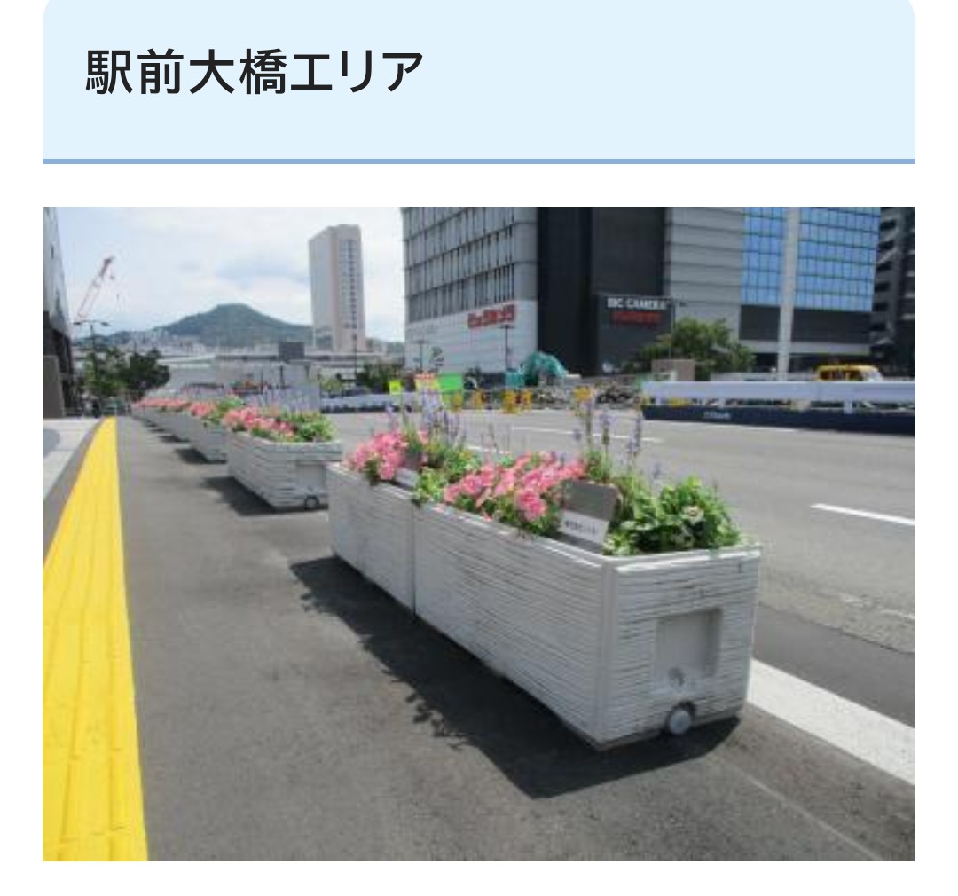 「駅前大橋エリア」四季の花設置事業2026年 協賛 2026.04.10駅前大橋に、プランターを設置して四季の花を飾り、市民生活にうるおいを与えるとともに、広島を訪れる人々へおもてなしの気持ちを伝える事業に協賛します。 <駅前大橋エリア>四季の花プランター設置事業|広島市公式ウェブサイト広島市公式ウェブサイト